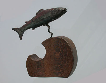 "Lachs" - Bronzeskulptur mit Korkenzieher von Karl Denning * * * * *