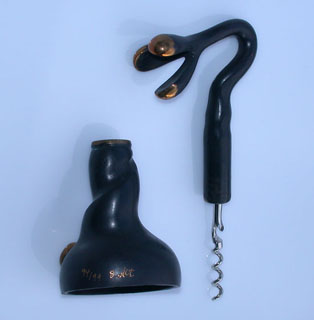 "Weinblume ", Bronzeskulptur von Otmar Alt, Auflage 99 Exemplare Die Krätzer stammen übrigens aus der Werkstatt von Kurt Hoppe. Bei einem Teil der Auflage findet man diesen seltenen Krätzer mit integriertem Kapselheber, wie hier im Bild rechts zu sehen.